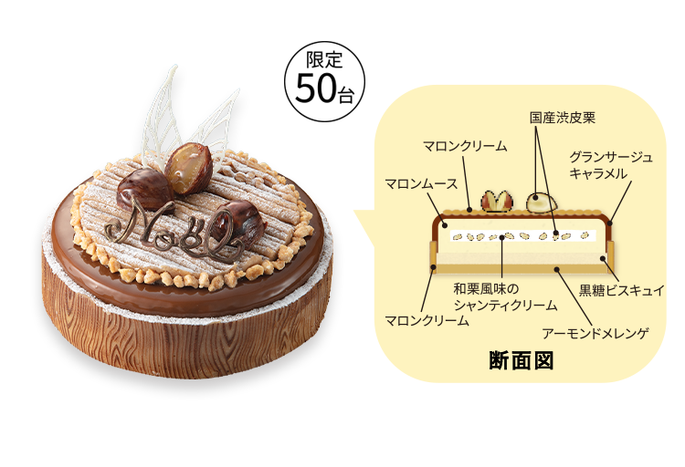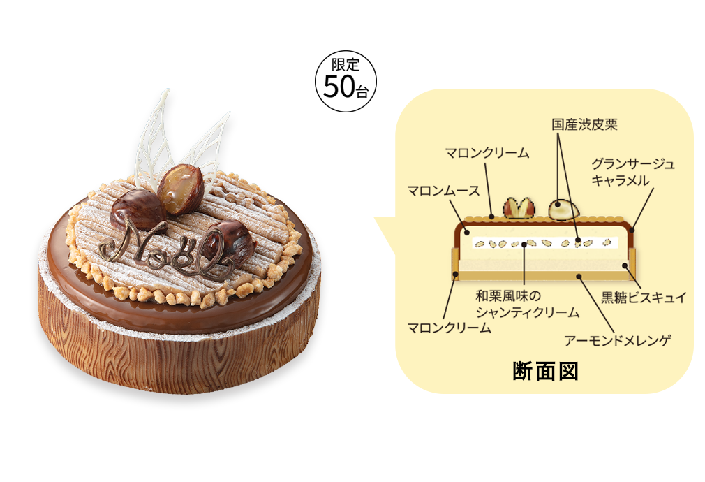 国産とフランス産の栗をたっぷりと使ったケーキです。